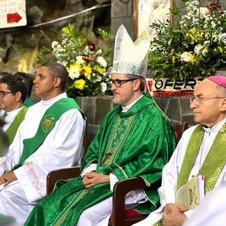 A Gruta da Mangabeira, silenciosa e sagrada, acolheu cada peregrino como um altar natural da misericórdia divina. Ali, diante do Sagrado Coração de Jesus — fonte inesgotável de amor, compaixão e perdão — foi realizada a oração do terço, a santa missa presidida pelo bispo diocesano Dom Vicente e concelebrada por Dom Corrado e um bom número de padres diocesanos. Houve também momento para confissões, oficio de Nossa Senhora e a benção com o Santíssimo Sacramento.
