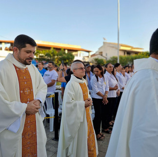 No dia 2 de agosto, às 17h, aconteceu a missa com as crianças, um momento de muita ternura e alegria. À noite, às 19h30, a presença das comunidades com seus estandartes coloriu a celebração, reforçando a beleza da comunhão eclesial.