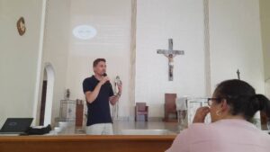 Na manhã de sábado, foi realizada a abertura do encontro com a Santa Missa da Festa da Cátedra de São Pedro Apóstolo. Em seguida, conduzidos pelo Pe. Ailton Ribeiro, da Paróquia de Nossa Senhora do Bom Sucesso (Ibitiara), os presentes aprofundaram-se no conhecimento acerca da Santa Missa, suas partes, ritos e demais elementos que envolvem este momento que, nas palavras do formador, “não é um como se fosse, mas é a atualização do ato de amor e doação realizado por Jesus na Última Ceia, perpetuado por seus discípulos e por nós hoje, quando nos reunimos para celebrar a Eucaristia.”