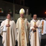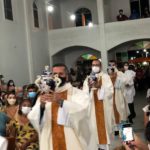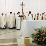Impulsionados pelo amor de Cristo e congregados no mistério da Santa Igreja, no fim de tarde do último dia 07 (quinta-feira), Dom Armando presidiu e o clero da nossa Diocese concelebrou a “Missa dos Santos Óleos e da Unidade”, no Missal romano denominada “Missa do Crisma”, na Paróquia São João Batista de Contendas do Sincorá. Em torno do mesmo altar, os fiéis celebraram a comunhão eclesial; os padres renovaram as promessas feitas no dia da ordenação presbiteral; os óleos usados na administração dos sacramentos da Unção dos Enfermos e do Batismo foram abençoados e o Santo Crisma consagrado. A cada ano, a santa missa de benção dos santos óleos é sediada por diferentes paróquias de nossa diocese. Neste ano a Paróquia São João Batista recebeu esta celebração, o que marca a etapa de finalização da construção da nova Igreja Matriz, e torna este momento ainda mais especial e memorável. O templo é fruto de um bonito e precioso esforço desta comunidade paroquial, junto ao seu pároco Pe. Claudio Machado.