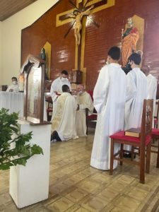 A celebração começou como de costume, e após a saudação, o Padre Samuel leu o Decreto de nomeação. Em seguida, o nomeado pronunciou o Juramento de Fidelidade segundo as normas do direito. Ao fim da celebração, o Pároco Weverson Almeira, dirigiu-se uma saudação aos presentes que comoveu a todos aos dizer que, a cidade de Rio do Pires, é sua casa, sua família.