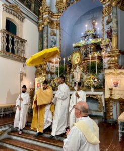 A Paróquia do Santíssimo Sacramento de Rio de Contas deu início no dia 07 de junho ao novenário em preparação à festa do seu Titular. O tema central deste ano “avancem para águas mais profundas” tem como base a carta pastoral do bispo diocesano Dom Armando Bucciol. A filarmônica Lyra dos Artistas abriu a festa com chave de ouro, realizando uma passeata pelo centro histórico da cidade, momentos antes da novena, conduzindo o Brasão da Diocese, o Brasão paroquial e a bandeira do Santíssimo Sacramento. Assim, com expressões de fé e arte, a comunidade local iniciou os festejos em honra ao Augusto Titular da amada e histórica cidade. A primeira novena foi presidida pelo Pe. Antônio Carlos Bonfim – pároco da paróquia São Paulo Apóstolo de Novo Horizonte, e concelebrada pelo nosso pároco Pe. Rinaldo Pereira.